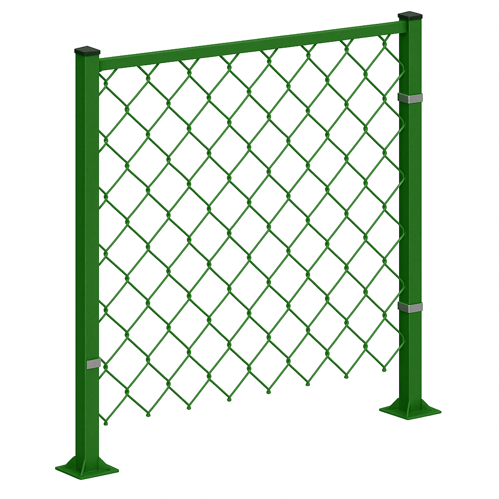 Крепление пролётов. К опорам монтируются секции — профнастил, сварные панели или сетка. Используются сварные соединения или болтовые крепления, в зависимости от проекта.